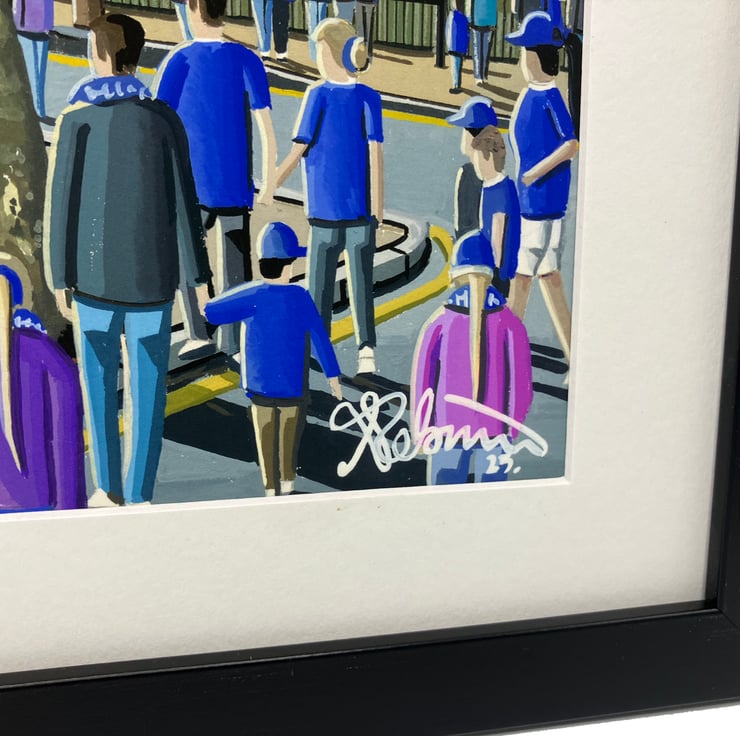Titled ‘First Class Chelsea’ this is a unique Chelsea, Kingsmeadow framed fine art print direct from myself the artist. My artworks are a celebration of the match day experience and of stadium architecture.