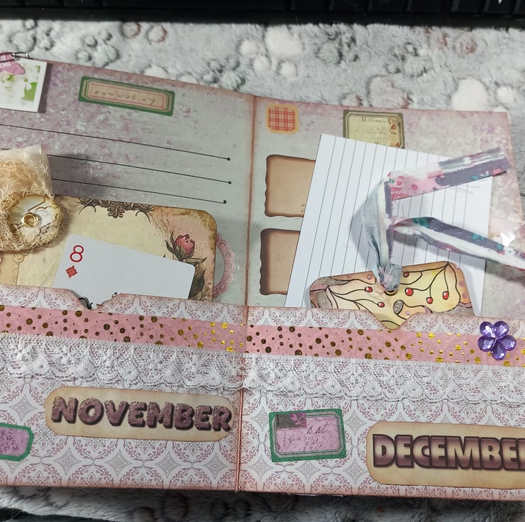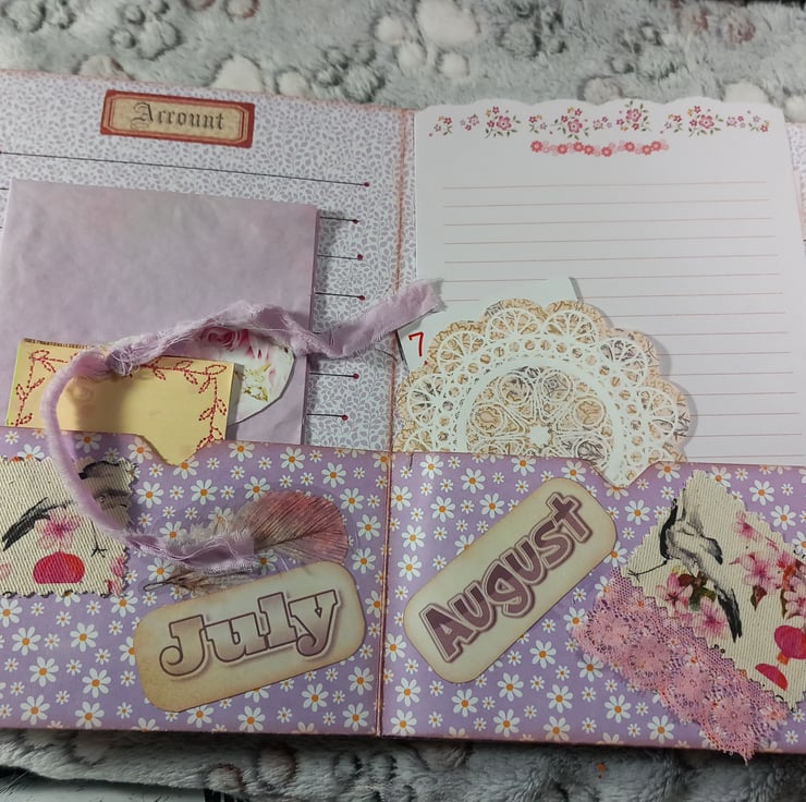 This handmade unique mixed media calendar monthly note keeper book is a junk journal style creation from the United Kingdom. The calendar and note keeper feature a variety of handcrafted and sourced materials, making each one truly distinctive. Personalisation is not available, but the natural charm and character of the piece make it a special and individual addition to any space.