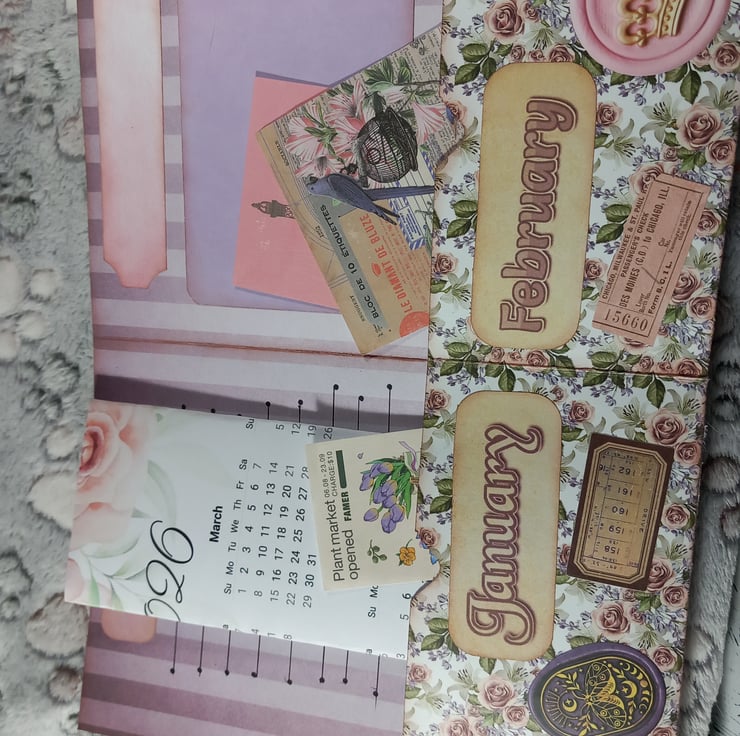 Handcrafted Unique Mixed Media Calendar Monthly Organizer - Junk Journal Style