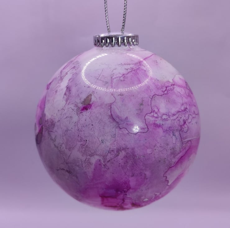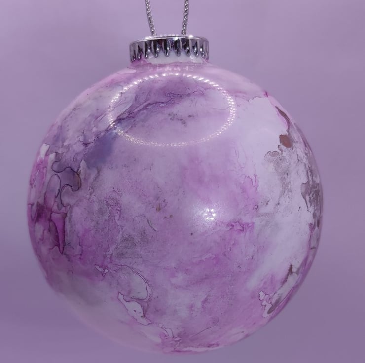 Acrylic, light weight bauble, 10cm diameter, hand painted with alcohol inks