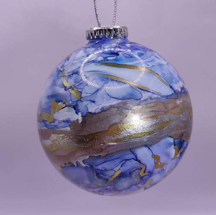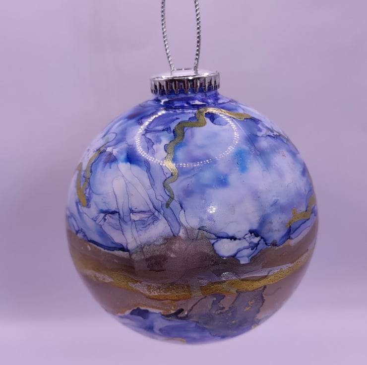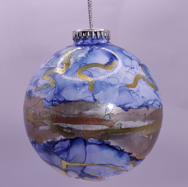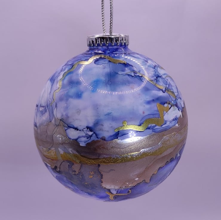 Acrylic, light weight bauble, 10cm diameter, hand painted with alcohol inks