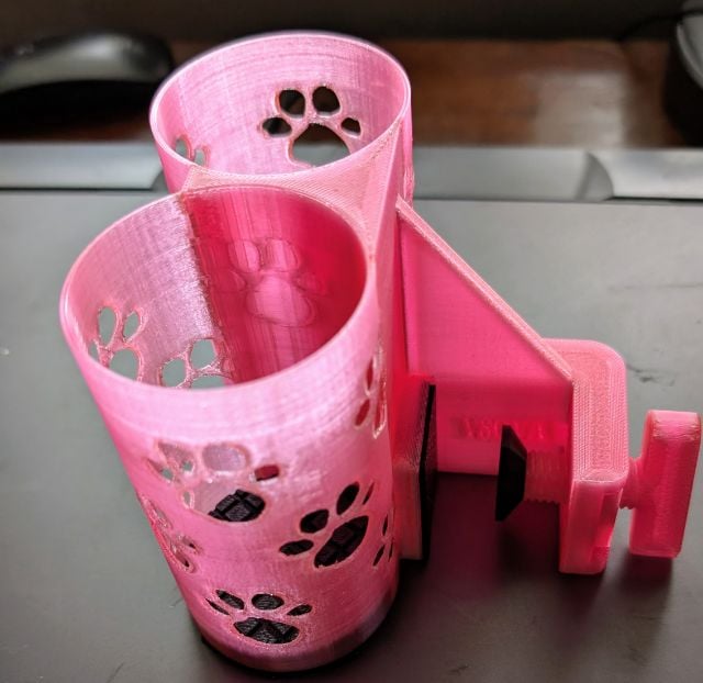 This caddy is designed by ourselves to store your Artero matt x spray cans or any can up to 54mm. There is also G clamp so will fit H bars up to 35mm for ease use so you don't have to take h bar apart. Also any colour you wish from colour pallet please see dryer handles for this thank you. Also tpu filament in the bottom to protect your bottom of cans etc.