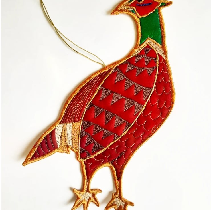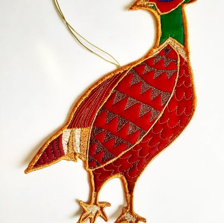 Made from layers of fabric including hand dyed Egyptian cotton and silk fabrics using the free machine embroidery style of sewing.
