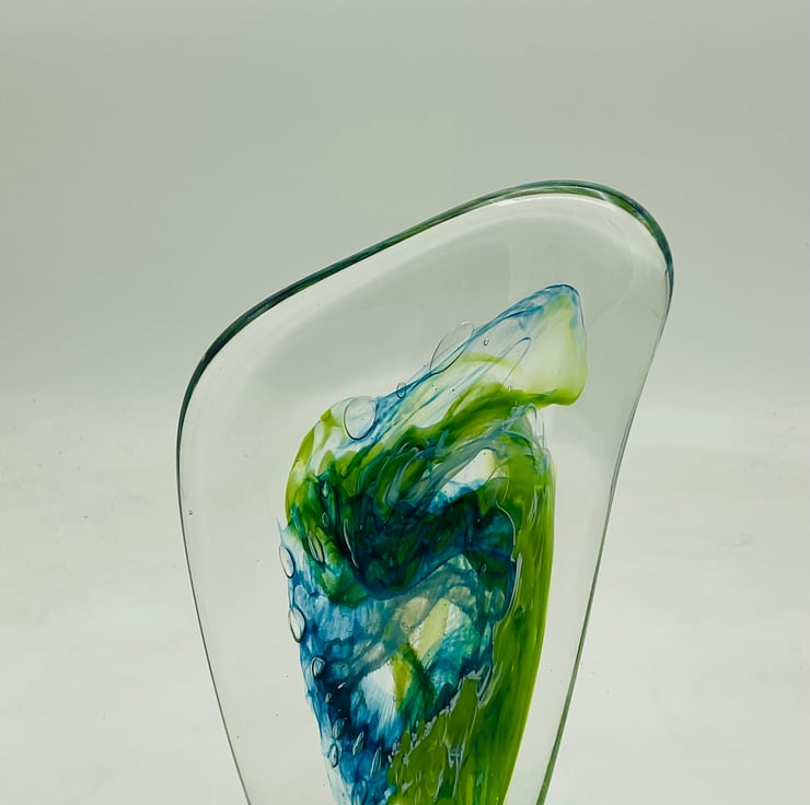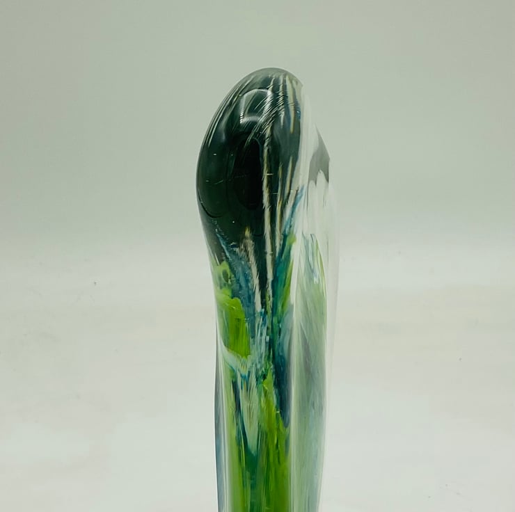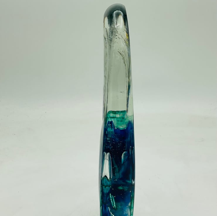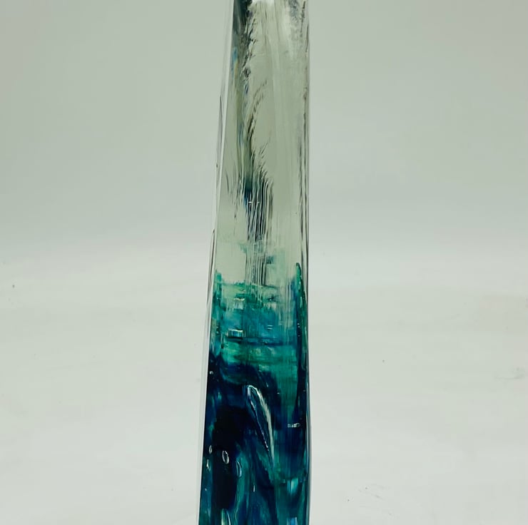 Standing Stones measuring approximately 19cms high. These pieces are sculptures that catch the light beautifully. As you can see they are thin so do need some where solid to stand and shine. Let me know in comments at checkout which colour you prefer Turquoise Citrus or Blue Green