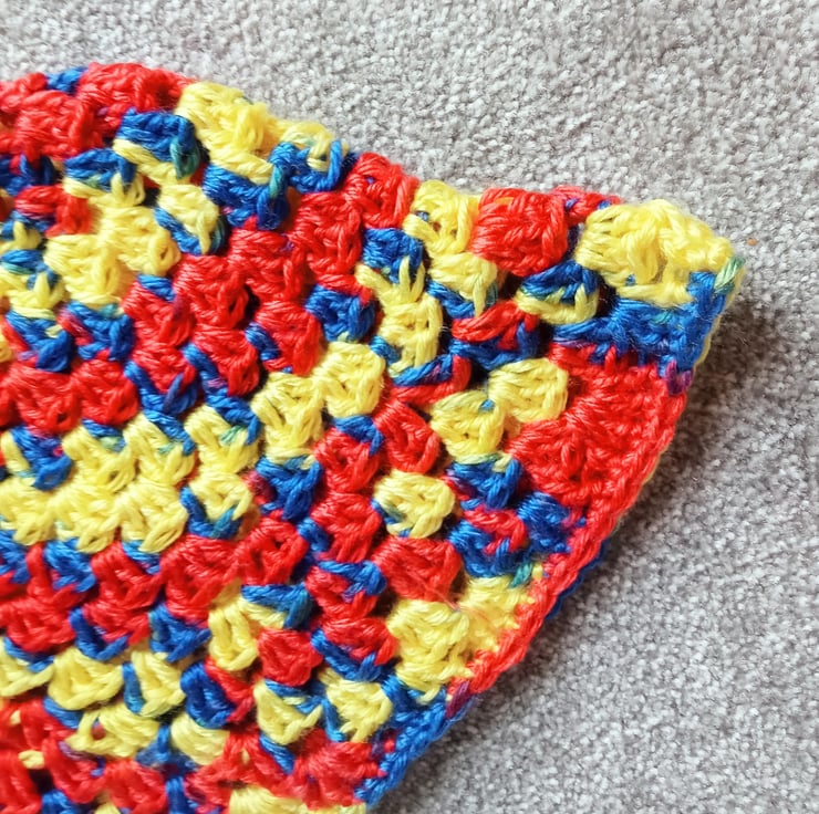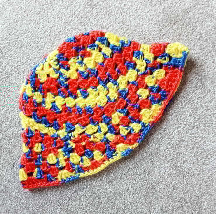 It is made with Divante Ombre double knitting yarn in shade Raspberry Ombre using a 5 mm (H) crochet hook. To fit adult. Circumference: 60 cm or 24 inches. Length: 21 cm or 8.5 inches.