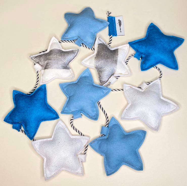 9 hand cut wool felt & wool/ viscose stars, with 2 hand printed detail