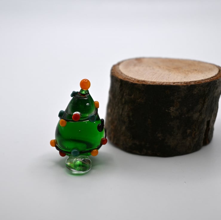 It has been made using green and clear glass and has been decorated with glass christmas lights