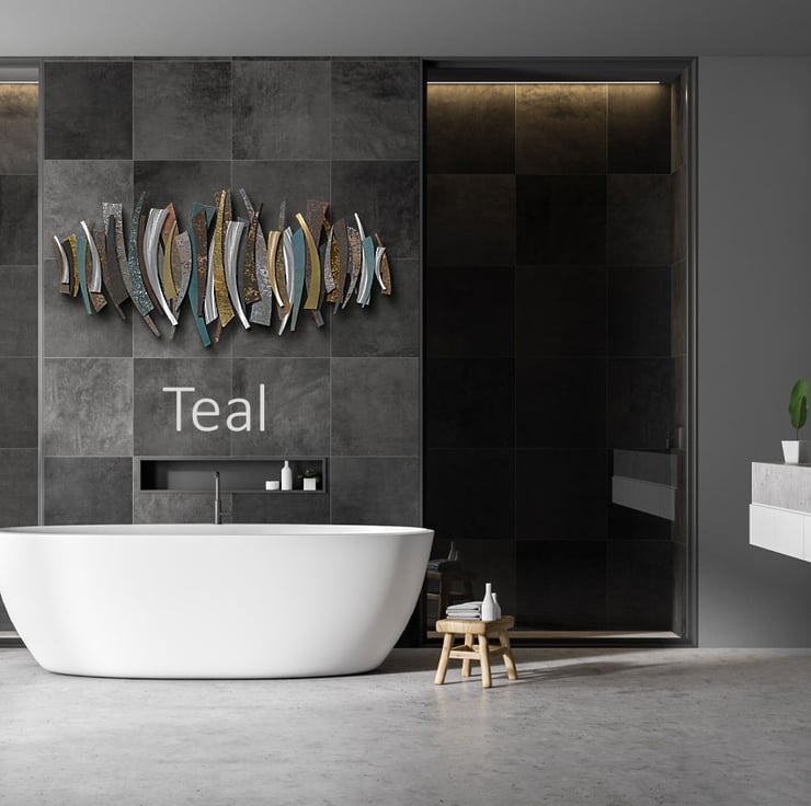 Add a splash of vibrant colour and contemporary elegance to your home with this handmade teal gold abstract metal wall art. Expertly crafted from high-quality metals, each piece showcases stunning teal, gold, bronze, and silver tones in beautifully curved and layered forms that bring depth and visual interest to any space. This striking sculptural design makes a perfect focal point for living rooms, hallways, or bedrooms.
