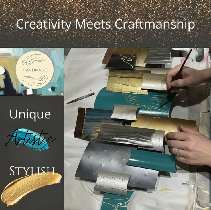 Ideal for modern and minimalist interiors, this artwork blends rich teal with luxurious gold and neutral metallics, delivering a bold and sophisticated look.