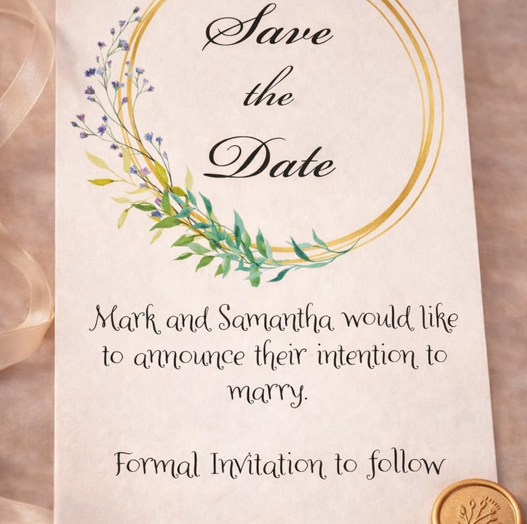 A beautifully coordinated wedding stationery collection featuring a soft gold ring design with delicate florals. Printed on premium smooth 300gsm card with a luxury finish.