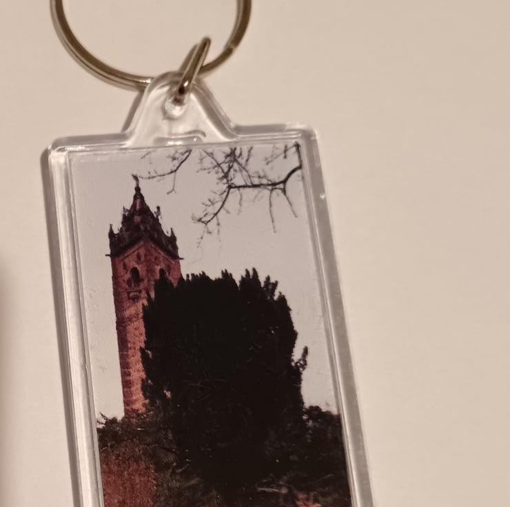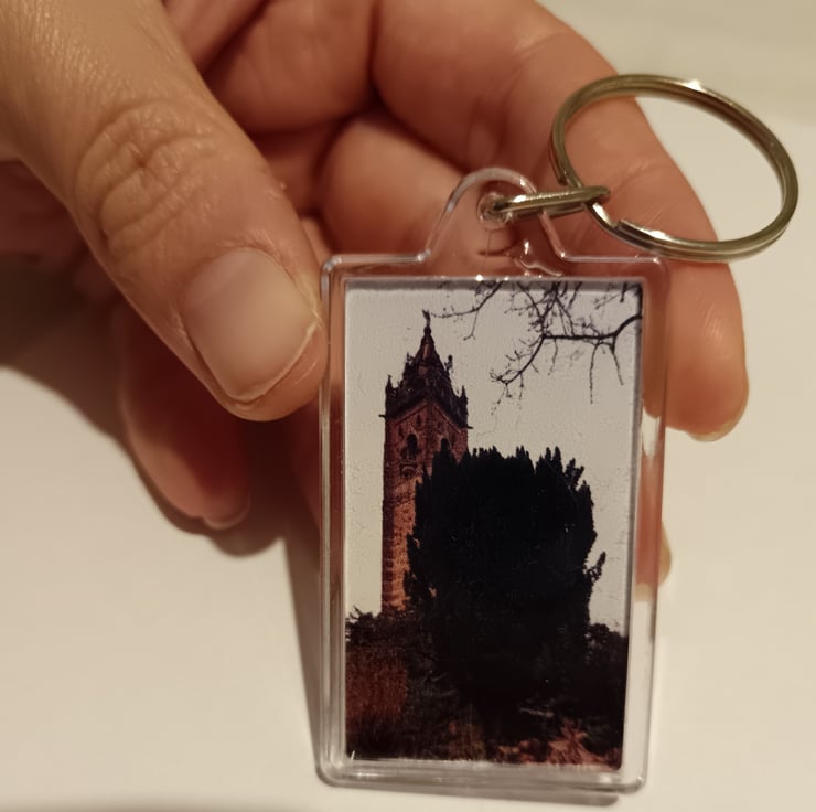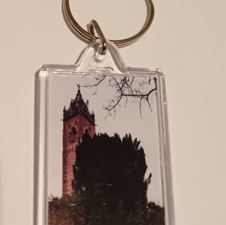Small keyring feature Cabot Tower, Brandon Hill Park IN Bristol, England, UK. Photography taken by myself. Opposite side is blank.
