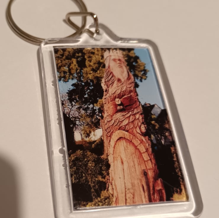 This keying features a unique folklore -style wooden sculpture that still stands in Yate today (England, Uk). Its a beautiful sculpture with many hidden images within it! Photography was taken by myself. Opposite side is blank.