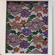 Using die cut to layer paper making a 3D effect, mounted onto a cream background and presented in a black wooden frame, faced by acrylic glass.