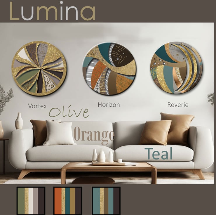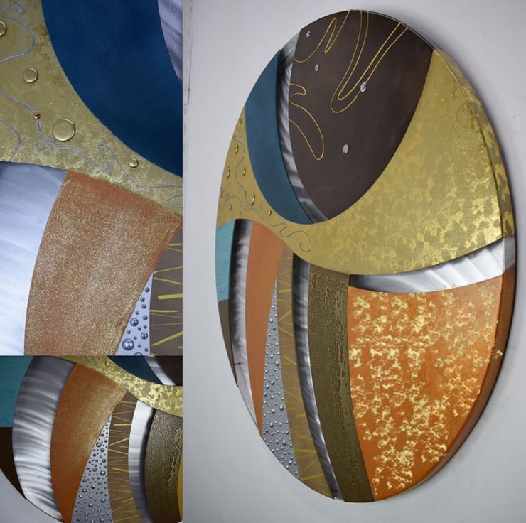 Transform your home with Lumina Accent Art, a 70cm abstract wall piece featuring intricate metallic circles and textured surfaces.