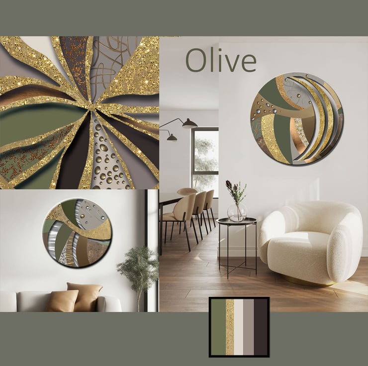 Inspired by the calming beauty of olive groves and the earthy tones of nature, this wall art features rich olive hues blended with sophisticated metallic accents. The design draws from modern abstract forms, combining organic shapes and textured finishes to evoke tranquility and timeless elegance. Perfect for bringing a touch of natural serenity and contemporary style to any space, this piece is crafted to be both soothing and visually striking.