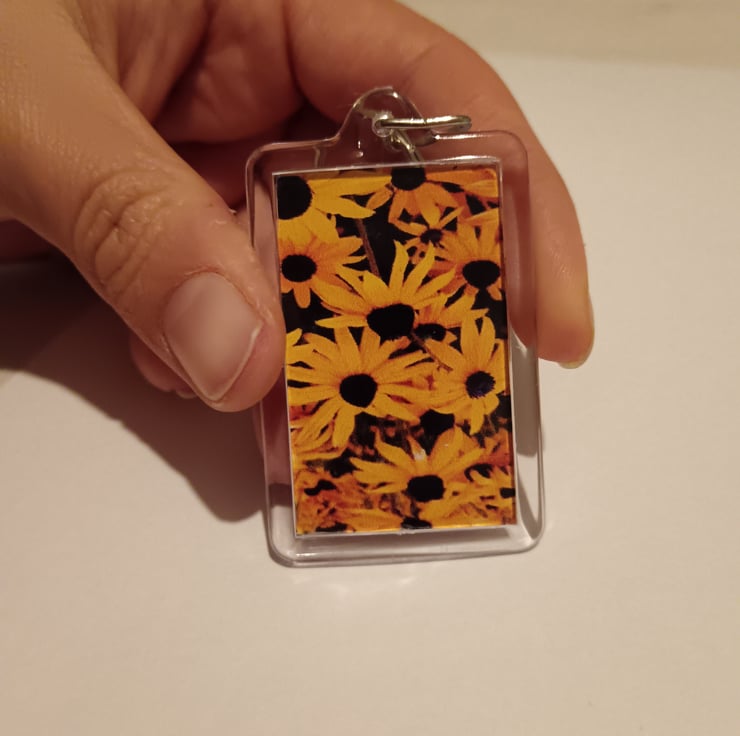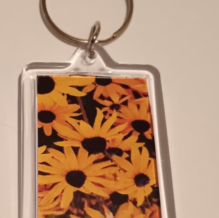 Beautiful bright yellow keyring featuring Black-eyed Susan flowers (Rudbeckia hirta). Photography was taken by myself.
