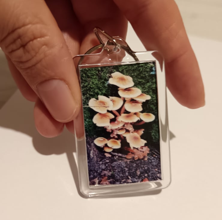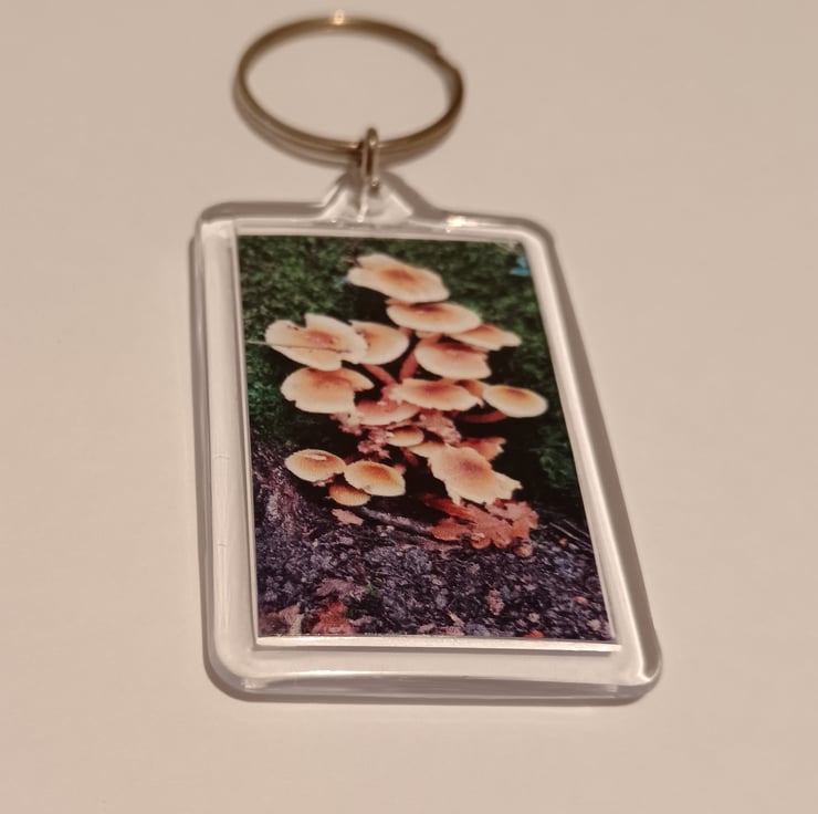 Gorgeous nature themed keyring featuring mushrooms in a forest. Photography taken by myself.