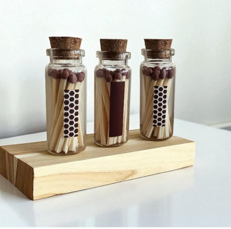 Important Safety Information - Always strike matches away from your face. - Keep away from children and pets. - Make sure your match is fully extinguished. - Matches can still be hot after blowing them out, dip it into water to make sure it’s safe to dispose of. - Strike paper pattern may vary. - Cork lids are not to be pushed shut as this may result in them falling into the bottle.