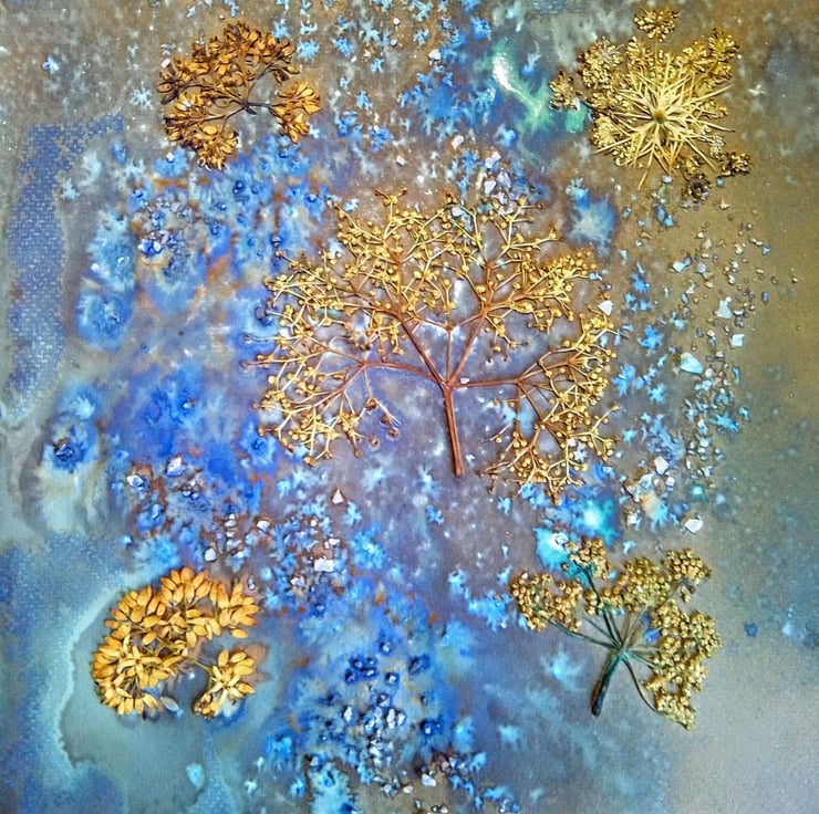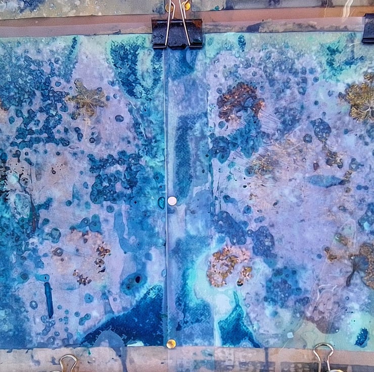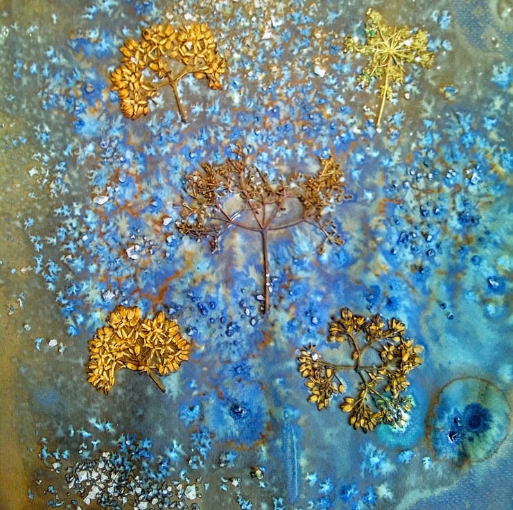 I used some Winsor and Newton Gold ink to add a dash of sparkle! I also used salt in the wet cyanotype developing process, because this gives a wonderful crystalising effect.