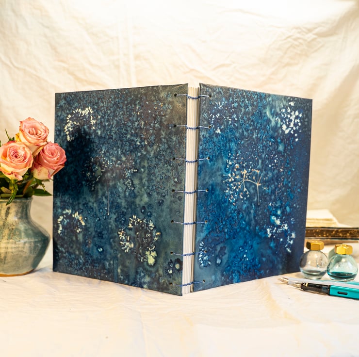 8"x10" Journal, Cyanotype Print with Umbellifers Like Little Trees (Folksy149)