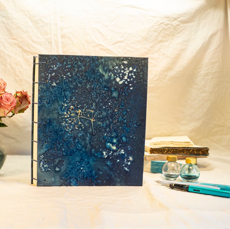 The covers are original cyanotype prints, which is an Earth-friendly art form.