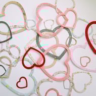 A lovely heart card, perfect for Valentines, an anniversary or a wedding. Made with cotton fabric, washi tape and cardstock mounted onto a square card which is blank inside for your special message. The hearts themselves are made from cotton fabric which has been mounted onto cardstock and then stuck onto the card.