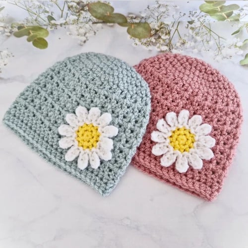 Crochet Baby Beanie with Daisy – Handmade Hat (Newborn to 2 Years)