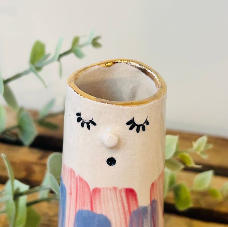 Each vase is finished with a 24k gold lustre rim. I recommend hand washing only.