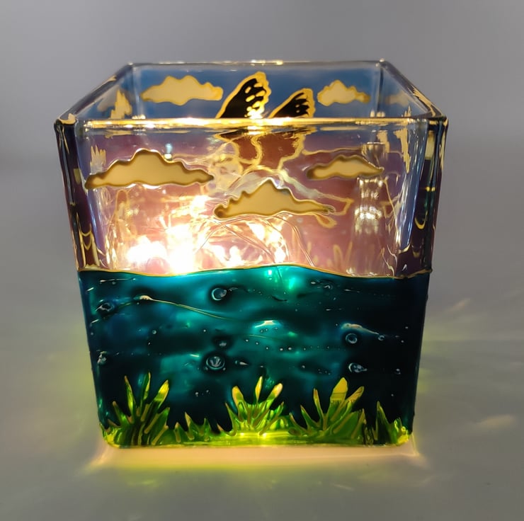 They are painted with specialised paint for glass and are very durable, but as with all paintings care must be taken when cleaning. The glass itself was made specifically for candles so heat won’t damage it.