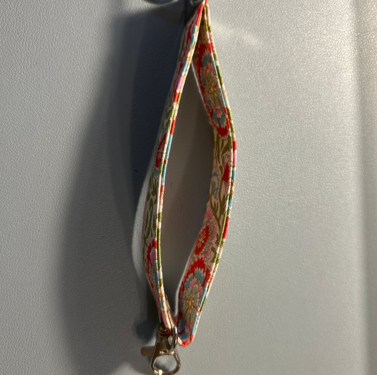 Handmade by me. Made to go with bags my customers order so no fabric is wasted. Ideal for dog walkers to clip to belt, bag or coat.