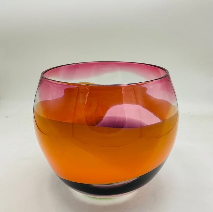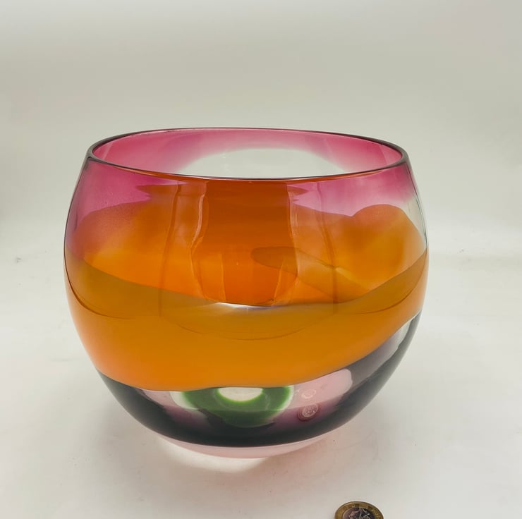 These bowls are all about layering the colours and mixing opaque and transparents which change as you turn the bowl around Looking through a 3 dimensional space
