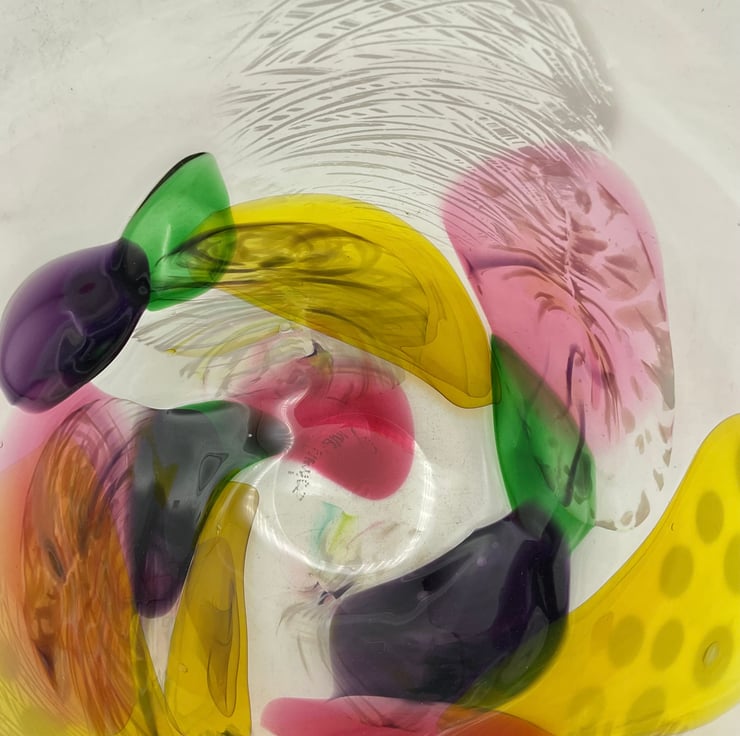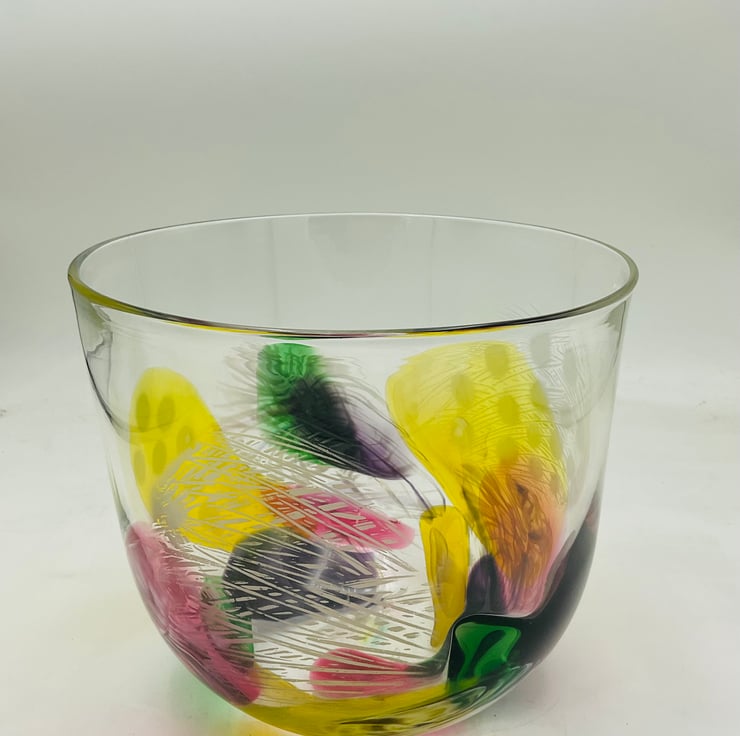 My inspiration comes from the microscopic creatures that live in the waters annd soil around the world called diatoms few people have heard of them yet if they didn’t exist we would not exist either. Under the microscope these algae type creatures look very like the shapes floating around this Bowl.
