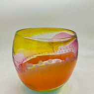 I love this ripple rim effect it’s another area on interest with the subtle play of light on the rim versus the bold orange , blue and green all finished off with a bit of sandblasted detail.