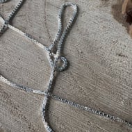 Star Weave is a 20 inch sterling silver chain with a delicate 1.8mm profile, crafted in a classic popcorn-style weave but elevated with alternating mirror-finish links. These tiny polished facets catch the light beautifully, giving the chain an extra-sparkly, twinkling effect reminiscent of starlight scattered across a clear night sky.