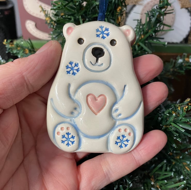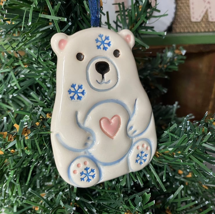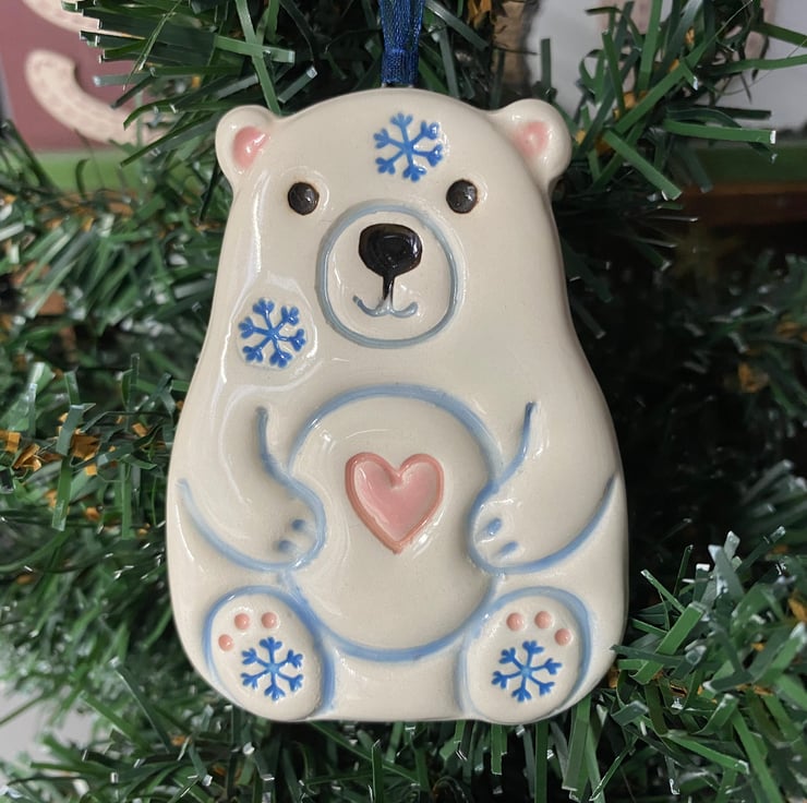 This super cute polar bear has a little pink heart detail. He's made from white earthenware clay from an image that I designed myself.