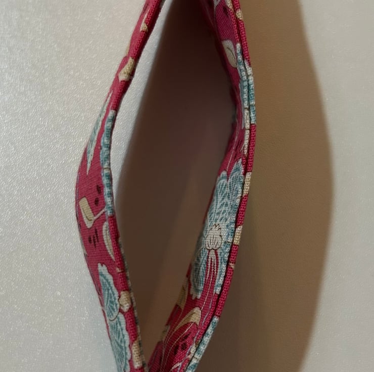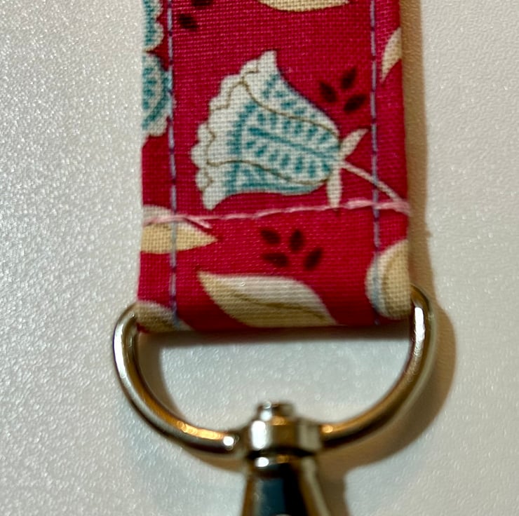 Pretty fabric double end key fob made using Tilda Windy Day - Stormy Red fabric. Handy for walking where you can attach fob to clothing or bag using the swivel lobster clip. Made using Tilda fabric. Contact me for specific fabric requests.