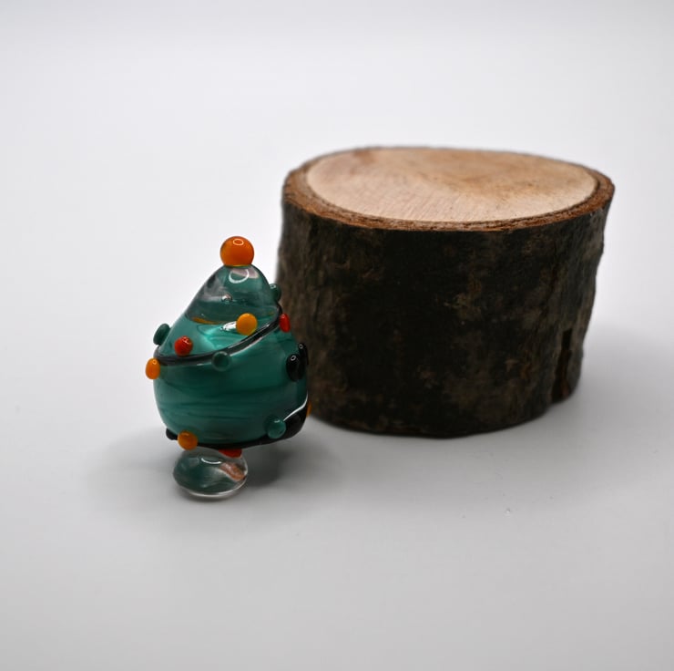 It has been made using green and clear glass and has been decorated with glass christmas lights