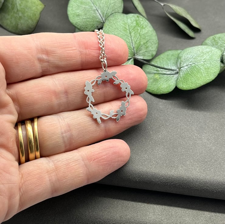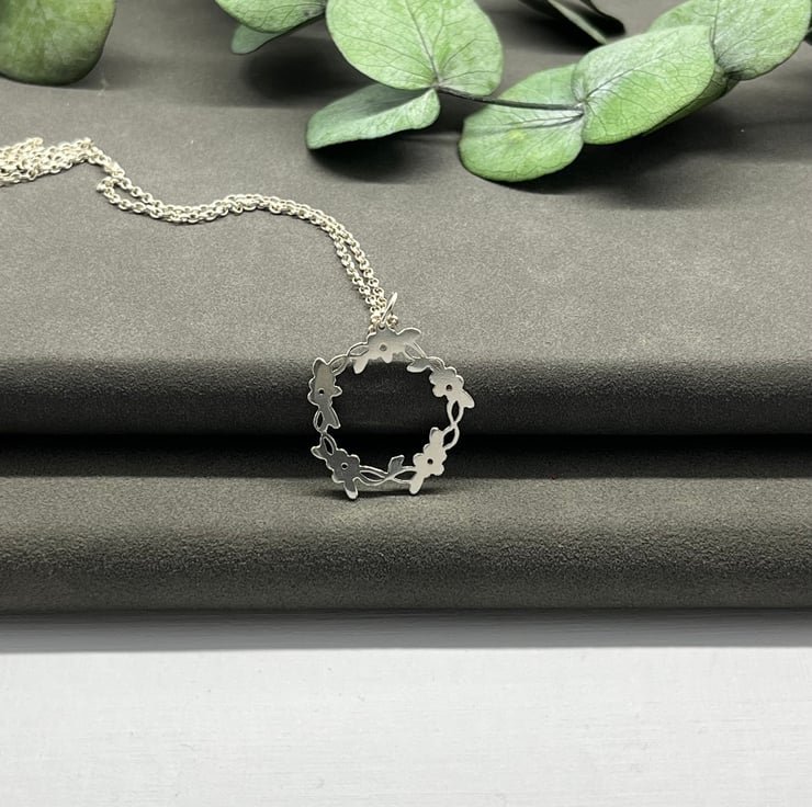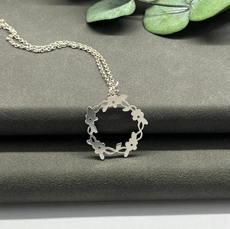 Pretty little flowers and leaves on a twisted vine, in a circle.