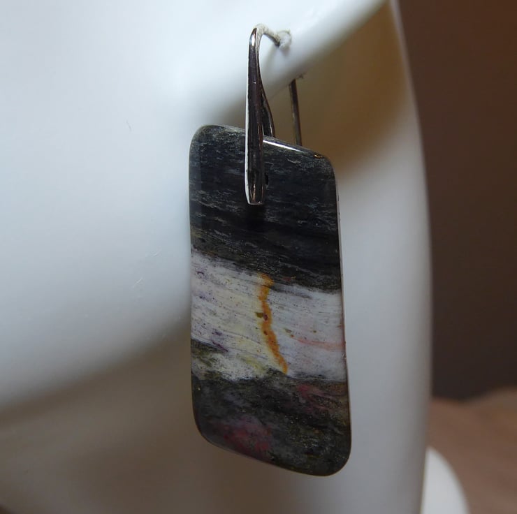 Pair of Sterling Silver & Ocean Jasper Gemstone Earrings