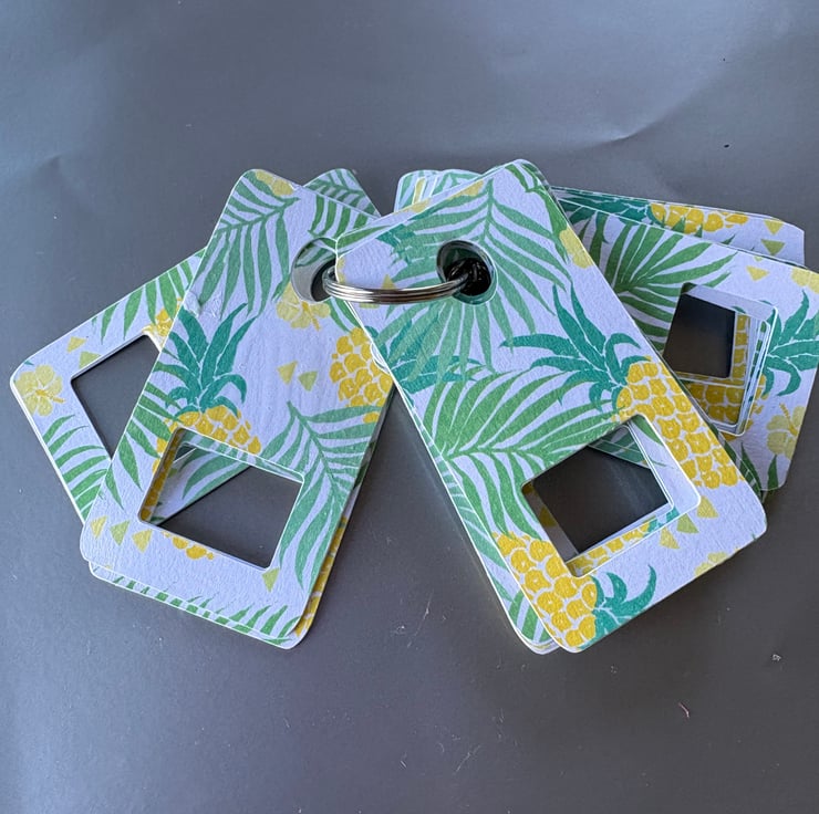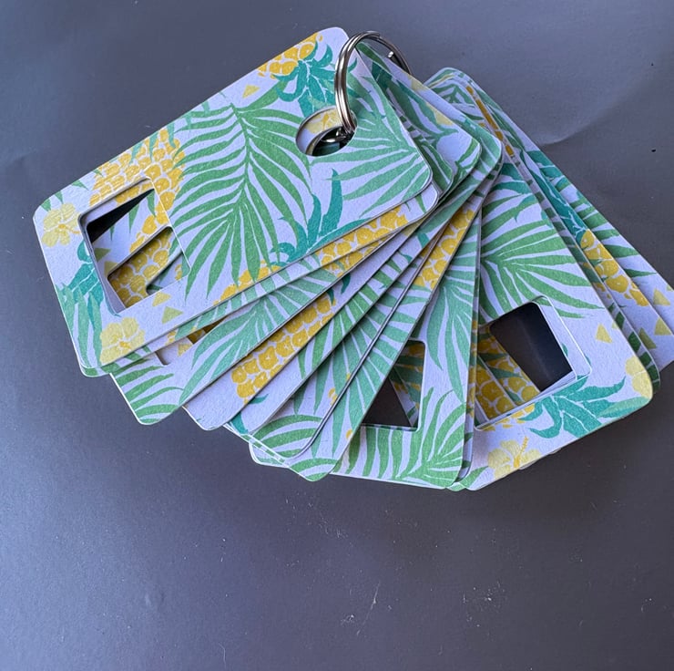 Designed with a large top hole to hang on a ring and a rectangular slot for looping and securing your threads, these floss drops make it easy to sort, store and identify your colours while adding a touch of style to your stitching setup.