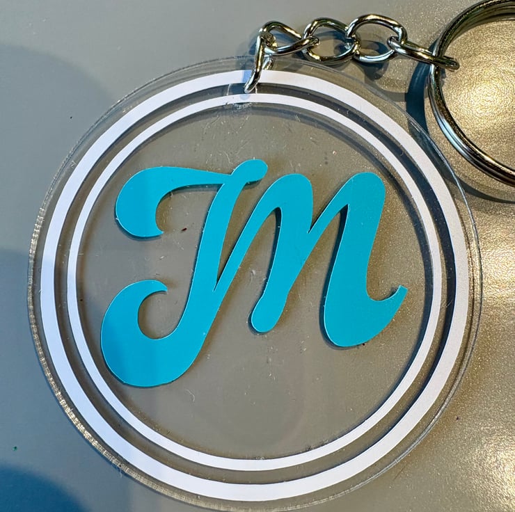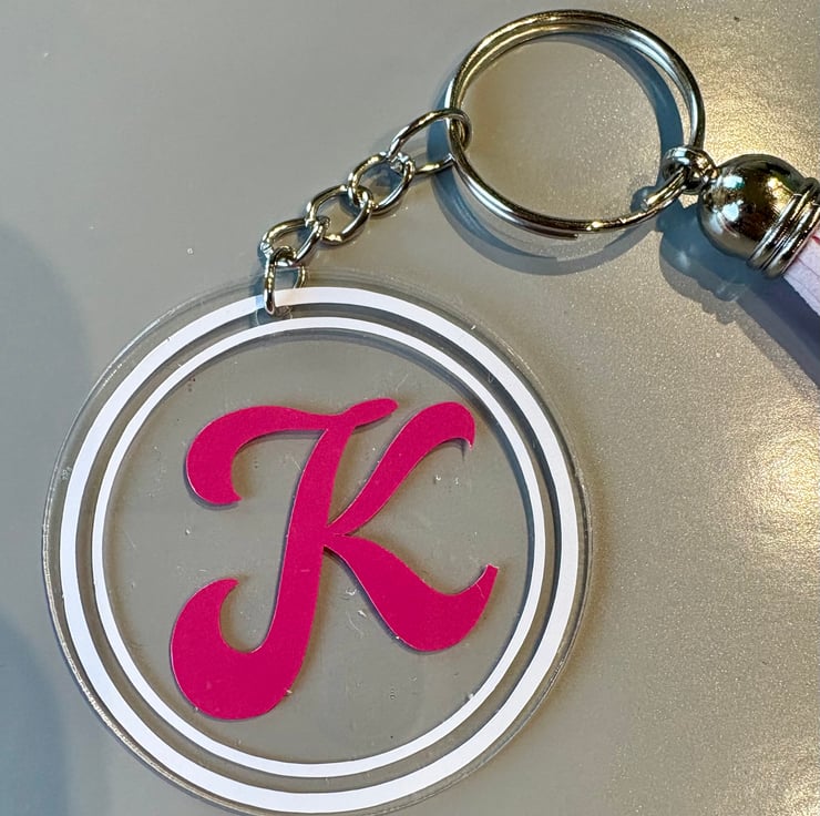 Each keyring is handmade with care, using high-quality vinyl and a sturdy acrylic disc for a polished, modern look.