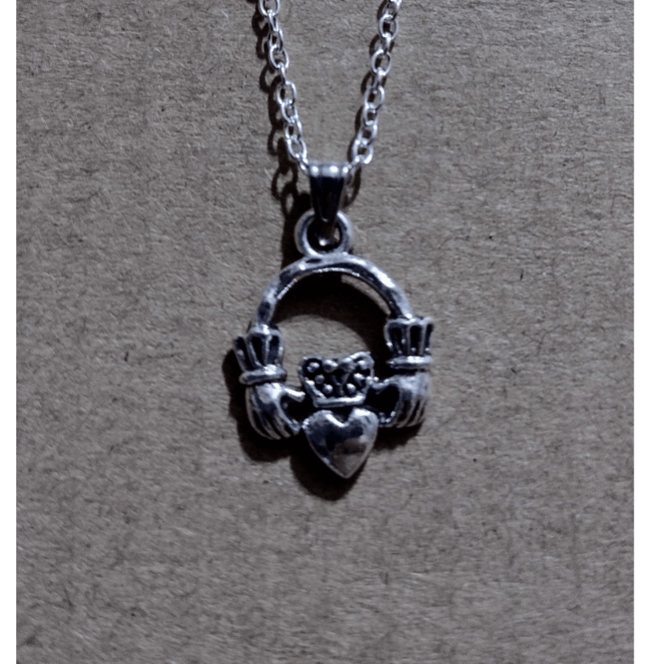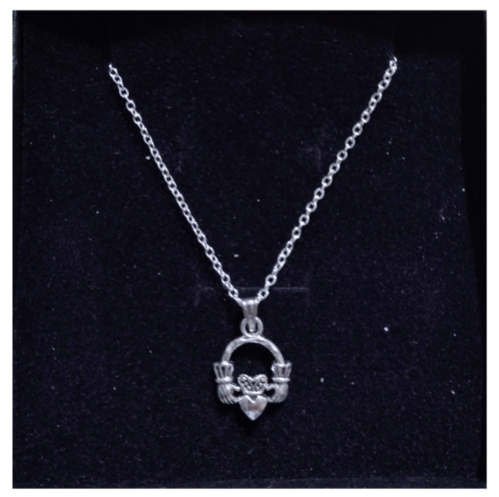 Tibetan silver Irish Claddagh pendant on a 18" silver plated necklace, comes gift boxed and is a perfect little gift