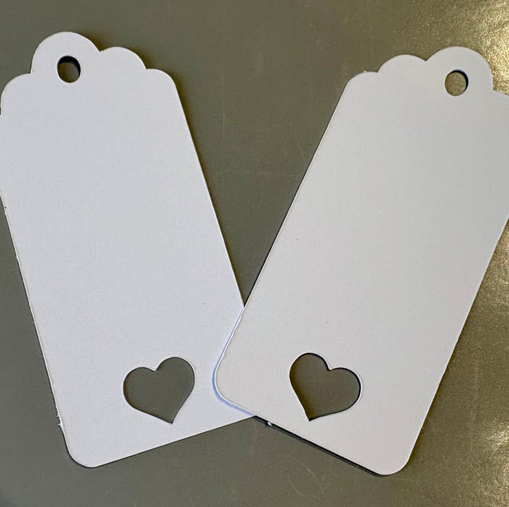 With their pretty heart-shaped cut-out and ready-to-thread hole, they can be tied onto napkins, favour bags, cutlery, mini bottles or keepsakes—making them ideal as wedding place names for guests.