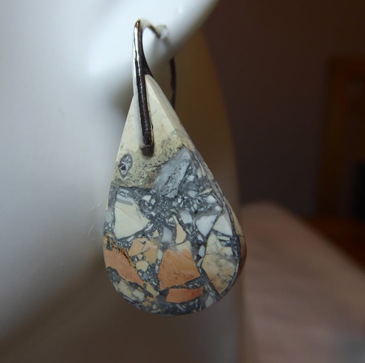 Pair of Sterling Silver & Teardrop Maligano Jasper Gemstone Earrings
