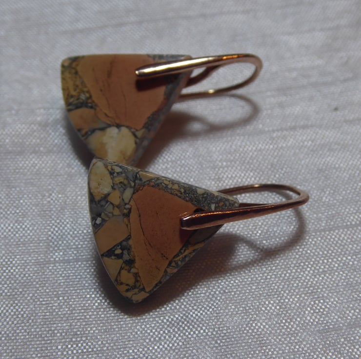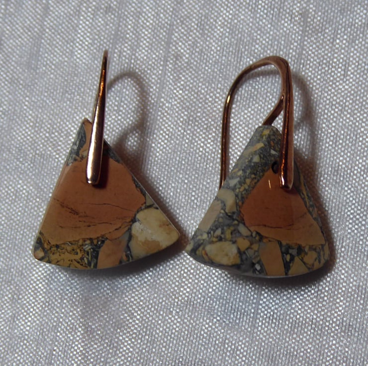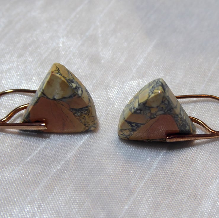 Pair of Sterling Silver & Triangular Shaped Maligano Jasper Gemstone Earrings