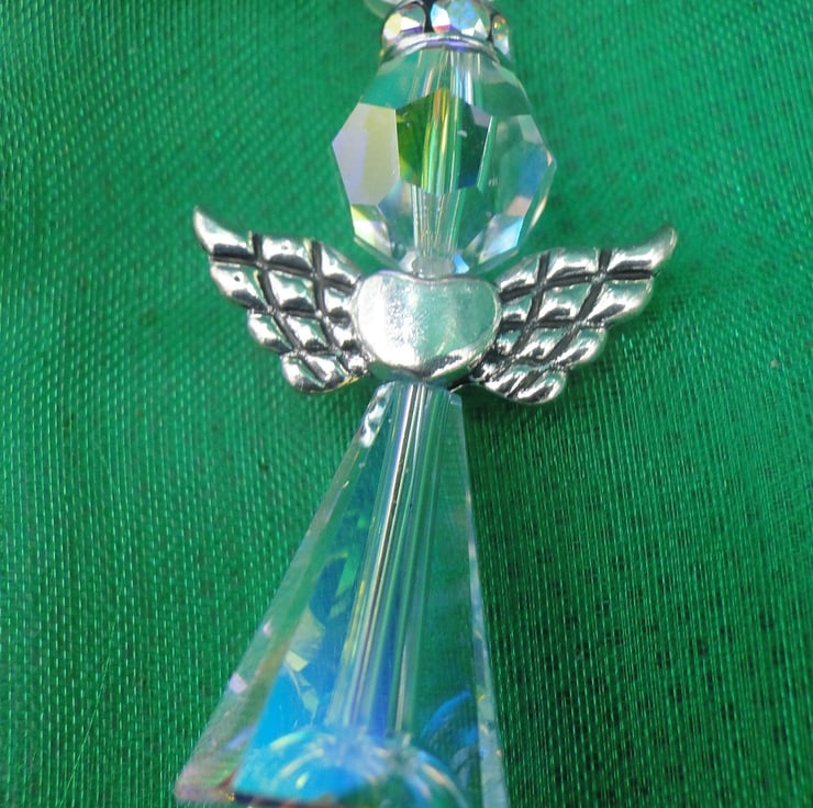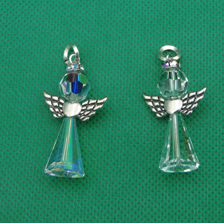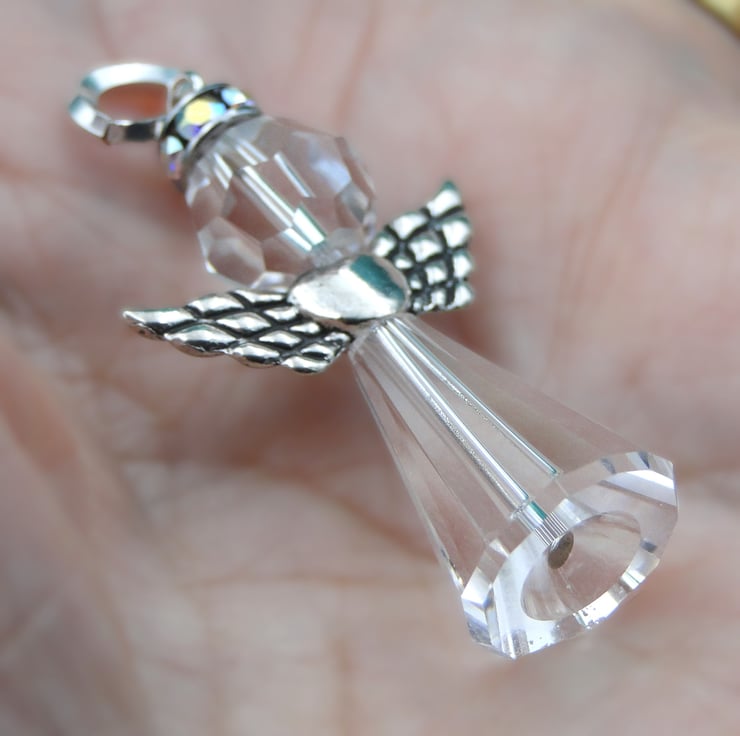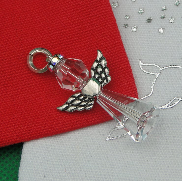 Angel charm made from crystals and silver. Can be a pendant or a charm for a Christmas Tree.