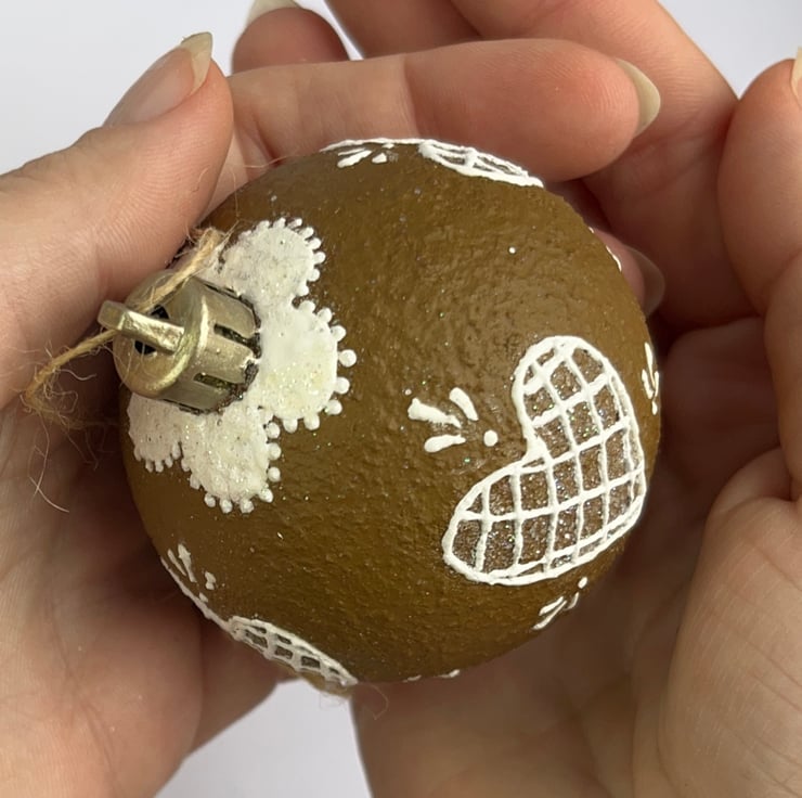 Christmas Tree Decorations Gingerbread Style Hand Painted Ball - READY TO SHIP