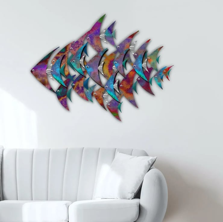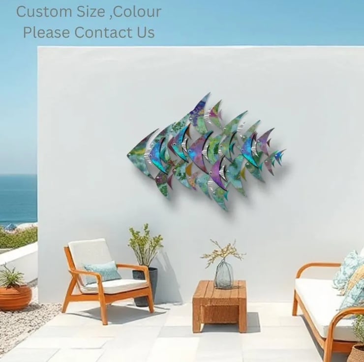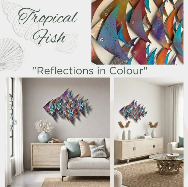 Our tropical Indoor/Outdoor stainless steel fish wall sculptures were inspired by the vibrant beauty and tranquility of coastal living. Drawing on memories of sun-kissed beaches, crystal-clear waters, and the mesmerizing movement of tropical fish, we sought to capture the essence of the ocean in a form that brings joy and relaxation indoors. The lively colours and flowing shapes evoke the playful spirit of marine life, while the stainless steel construction echoes the resilience and elegance of the sea itself.