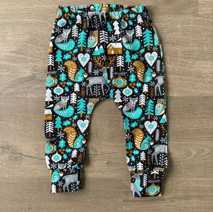 Comfy, Cuffed stretchy Cotton (with Lycra) winter scene leggings