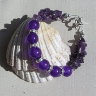 This Stunning Bracelet is made from Bright Pink Rhodonite Oval Beads teamed with Pink Shell Pearl round Beads and finished with Rose Quartz Gem Chips each section separated by an ornately decorated Tibetan Silver Bar Spacer with a tiny Silver Heart at each end- a Beautiful Joyous combination that will look stunning either worn casually or with something more Elegant for a Special Evening out